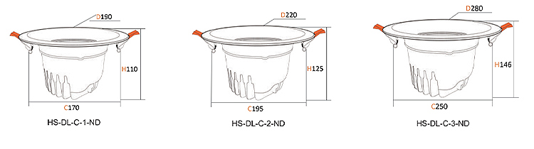 HS-DL-C-280-XD φ280 146 250 40W 4000 60 ° 310x310x170 1