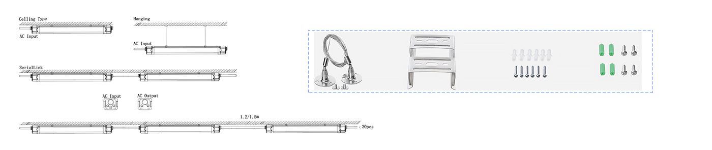 | HS-TPL- A120 | 4 | 40W | 6000 | 150LM/W | 1280x290x250 | 9 |